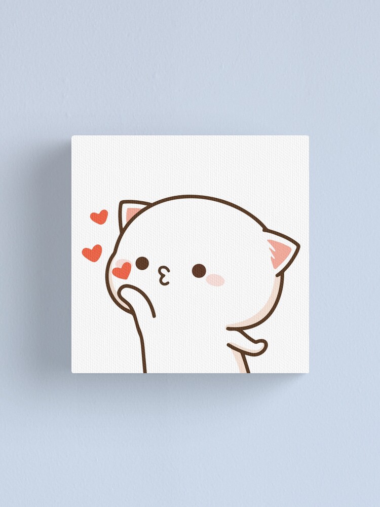 Peach And Goma Mochi Cat Blow Kiss Canvas Print By Misoshop Redbubble