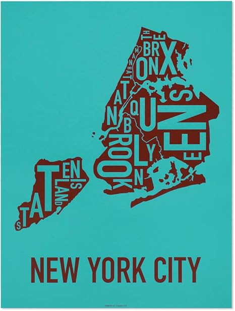Amazon Com Ork Posters New York Boroughs Map Art Screen Print Teal Sienna 18 X 24 Posters Prints