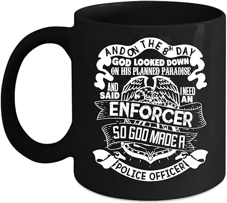 Amazon Com On The 8th Day God Made A Police Officer Coffee Mug Cool Police Coffee Cup Coffee Mug 11oz Black Kitchen Dining